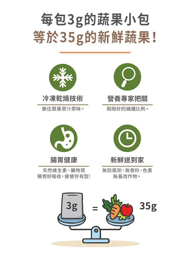 ◆ 富含六種以上蔬果,冷凍乾燥技術,鎖住營養!